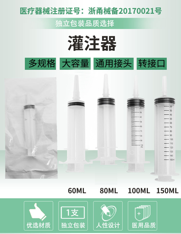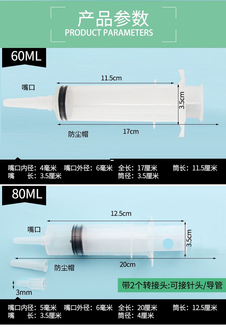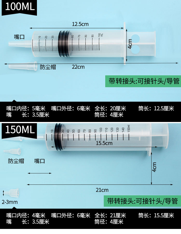 大容量大号针筒医用注射器针管胃管鼻饲喂食器灌肠灌注流食助推器