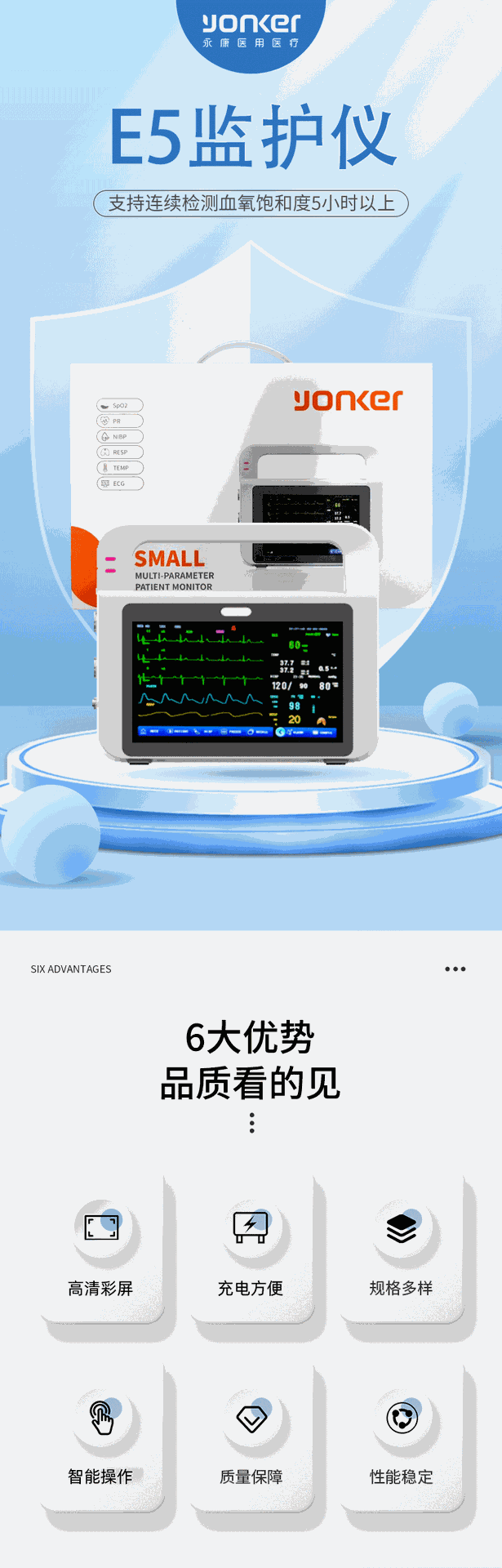E5便携式医用转运兽用监测仪呼吸睡眠检测心电监护仪